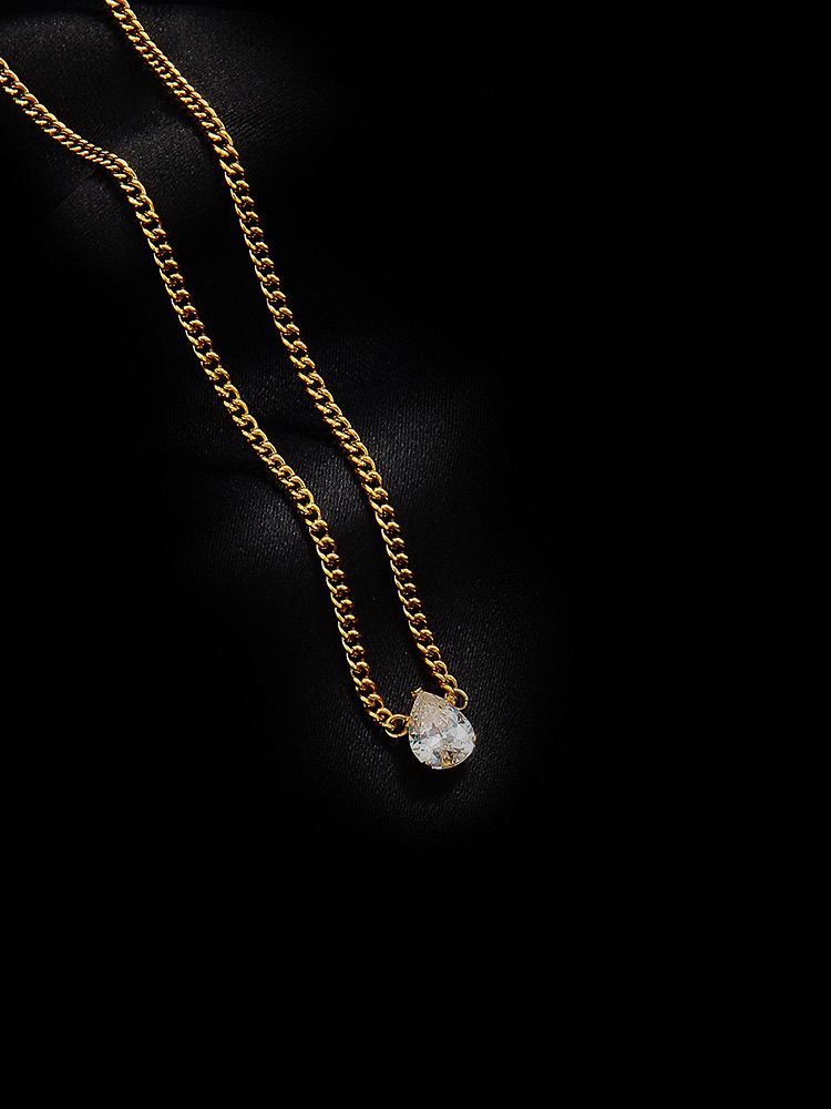 14K Yellow Gold Diamond Rolo Chain with Diamond Pendant