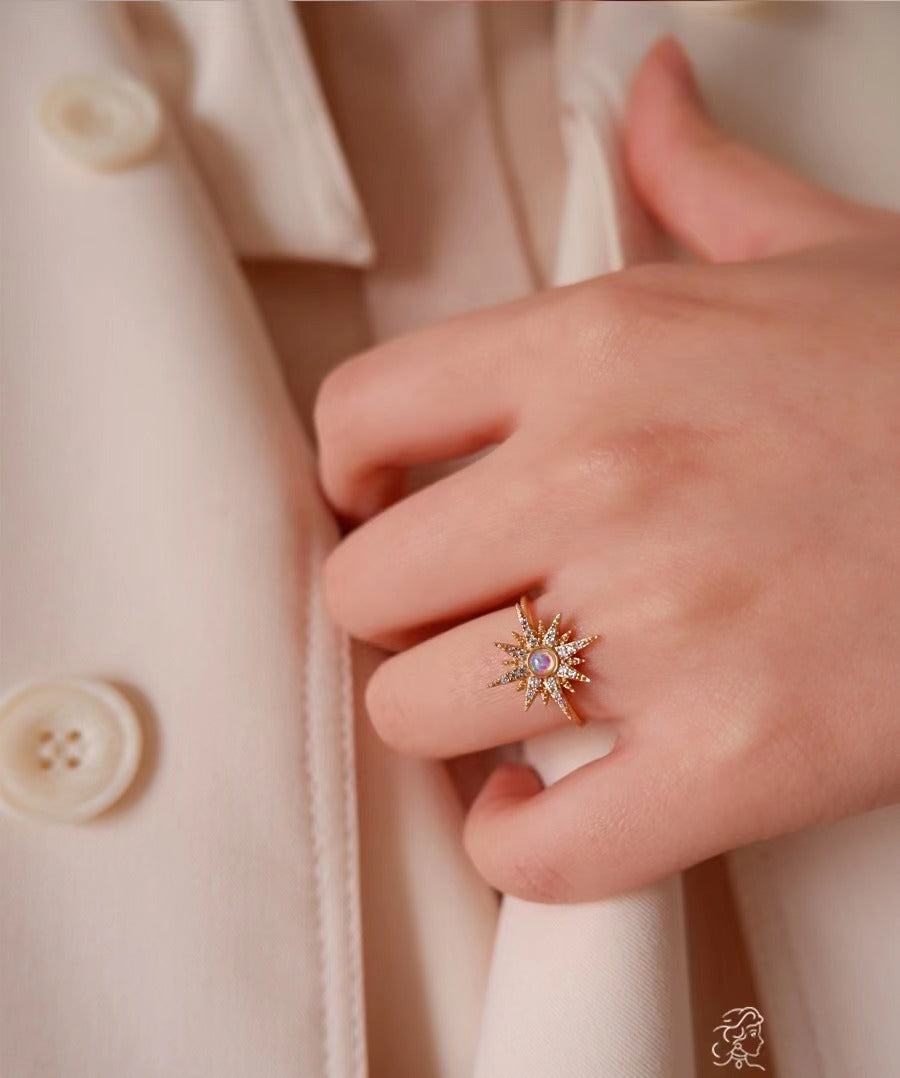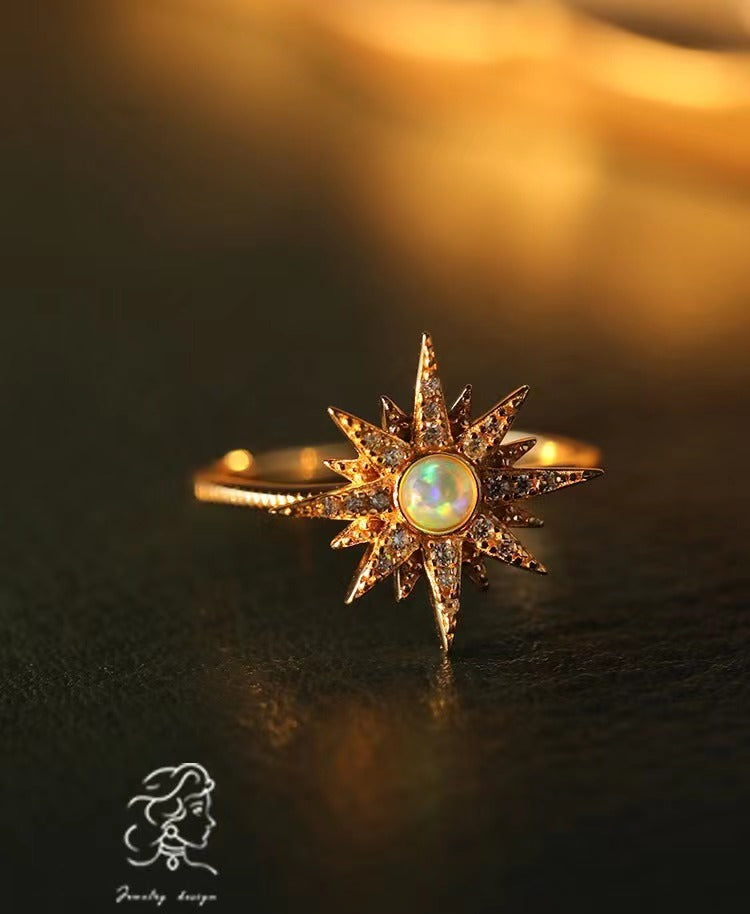 Adjustable Sun Rings for Women, Fidget Ring to My Daughter Ring, Starburst Ring, Natural Opal Ring, Sun gold ring, You are My Sunshine Ring