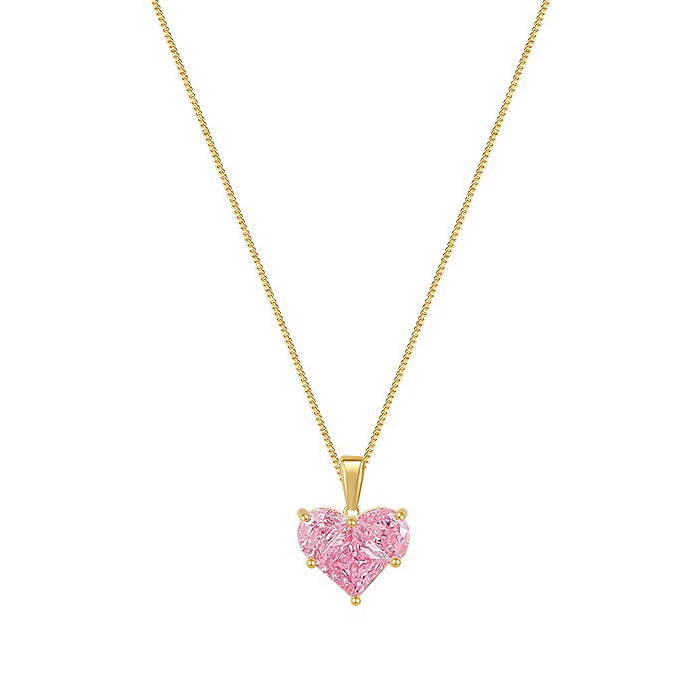 14K Gold Plated Pink Heart Cut Birthstone Halo Pendant for Women Girls Birthday Jewelry, Heart Design Elegant Jewelry Pink Love