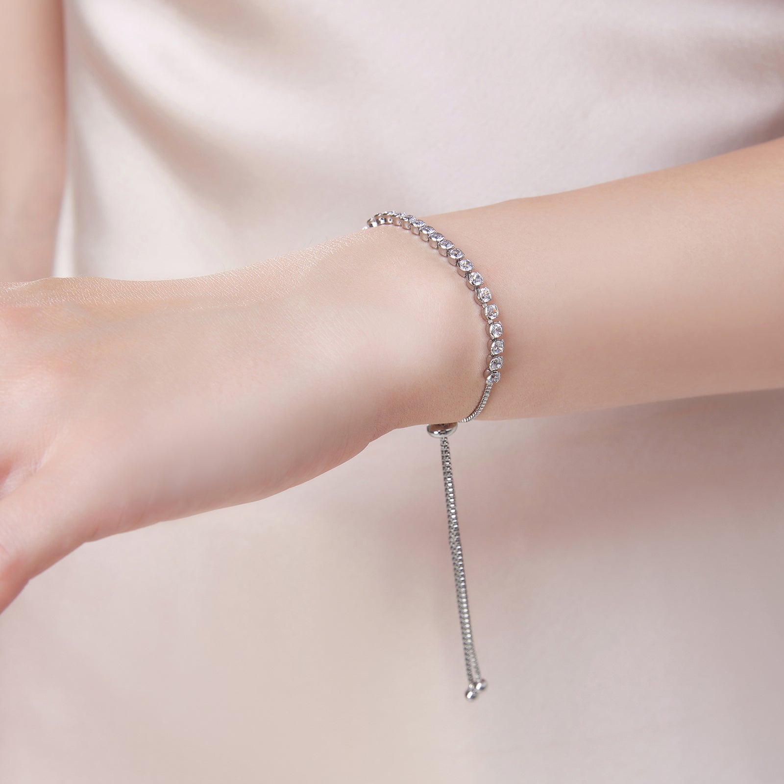 Adjustable Bracelet for Various Occasions: The Sapphire Crystal Slider Adjustable Tennis Bracelet is versatile for different occasions. With its sliding extender chain design ensuring a perfect fit on the wrist, you can wear it solo or pair it with other gold bracelets, showcasing a multi-layered fashion allure.