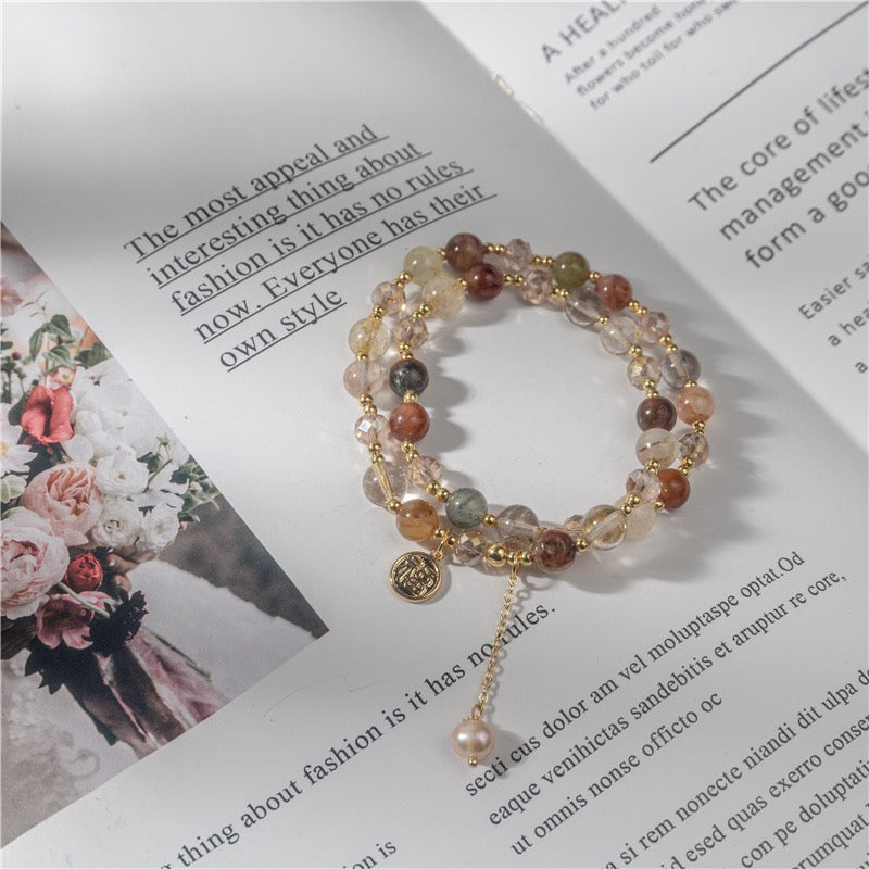 Pink Quartzs Chipped Gravel Beads Bracelets for Women Irregular Crystal Natural Stone Bracelet Jewelry,7 Ghost Amethyst,21 cm