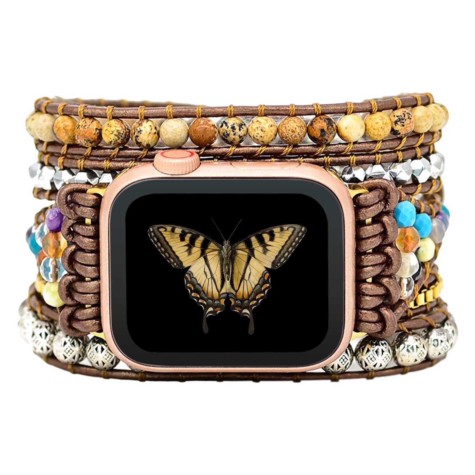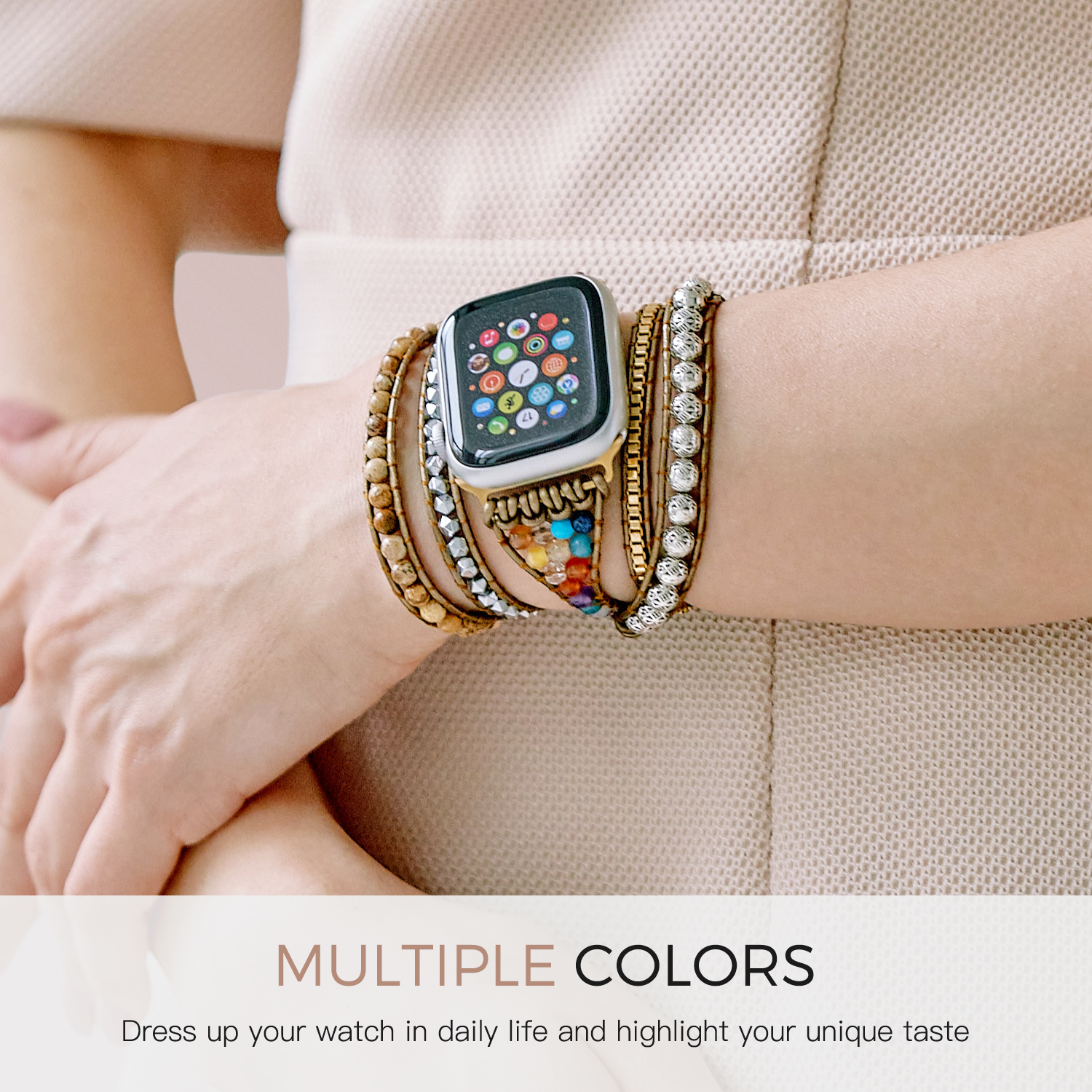 Mahogany Grain Boho Beaded Apple Watch Band – Handmade Natural Stone Bracelet Strap