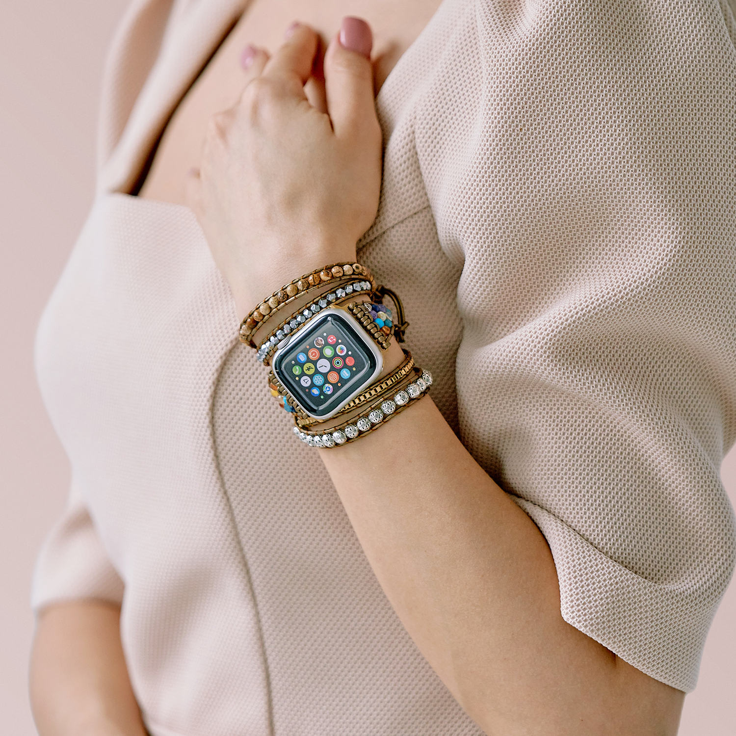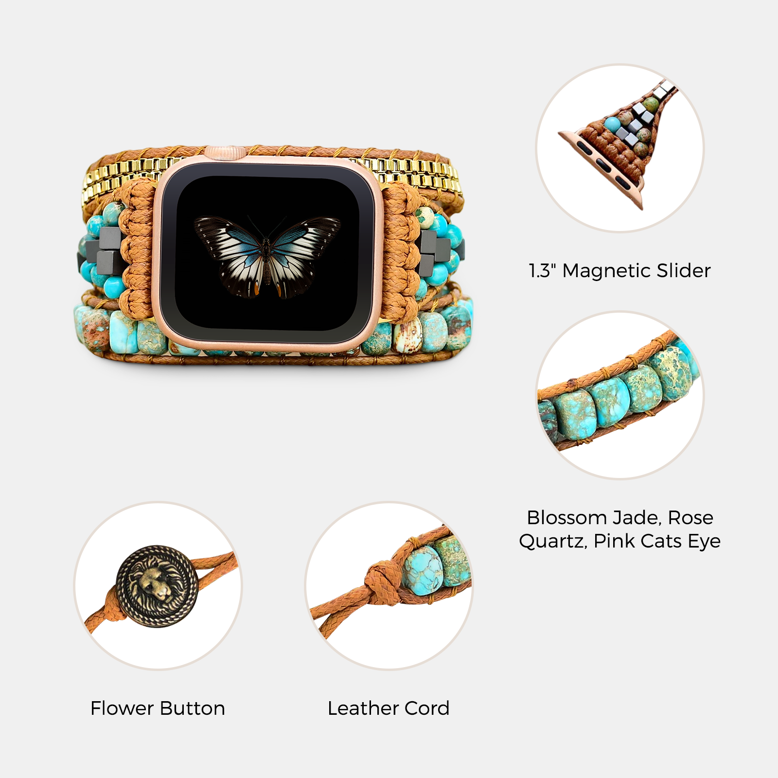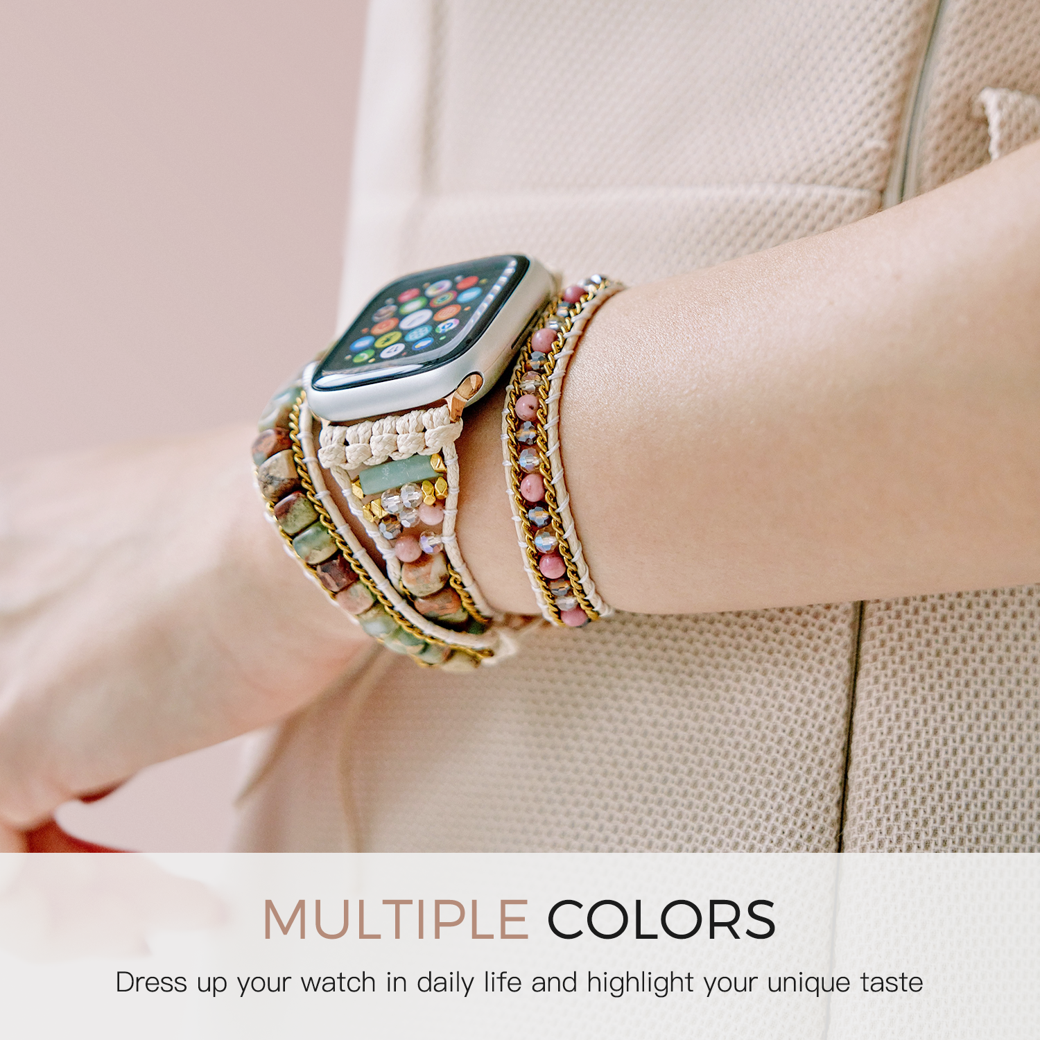 Rose Quartz Boho Beaded Apple Watch Band – Handmade Gemstone Smartwatch Strap