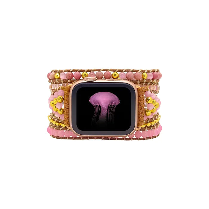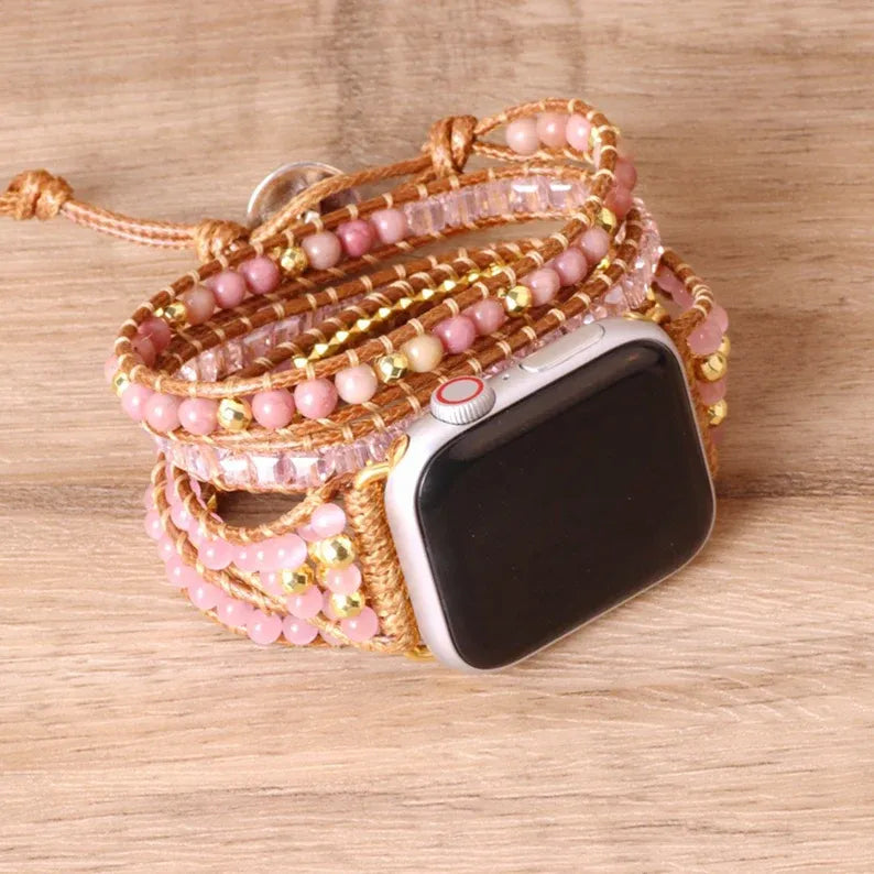 Rose Quartz Boho Beaded Apple Watch Band – Handmade Gemstone Smartwatch Strap