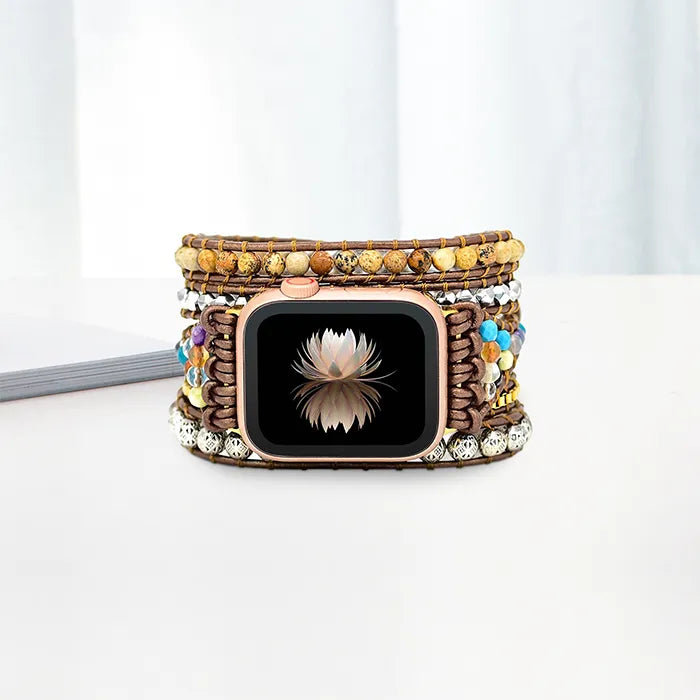 Upgrade your smartwatch with the Tiger’s Eye Watch Band, featuring handmade boho beadwork and natural energy stones. Designed to be both fashionable and functional, this watch strap offers aesthetic appeal and spiritual significance, making it the perfect choice for those who love nature-inspired accessories.