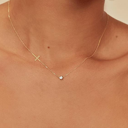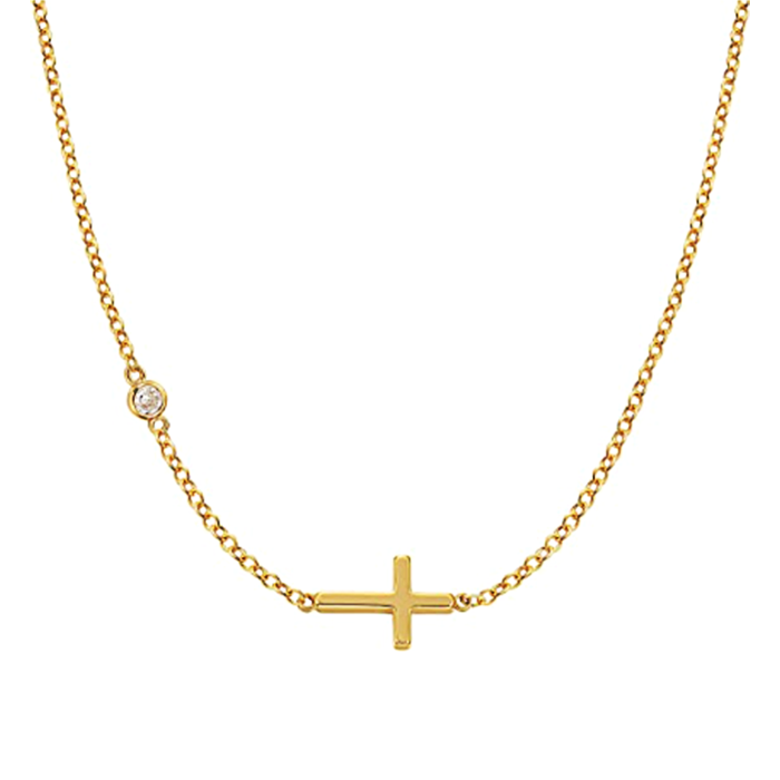 Cross Necklace for Women, Cross Pedant and Diamond, Simple Cute Necklaces for Women Gold Jewelry for Women, 17"+2"