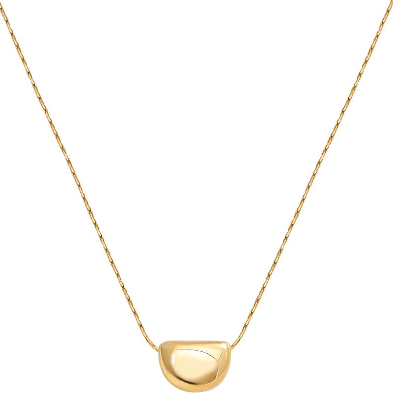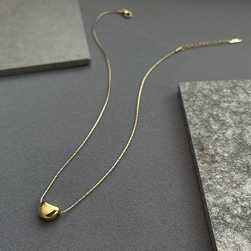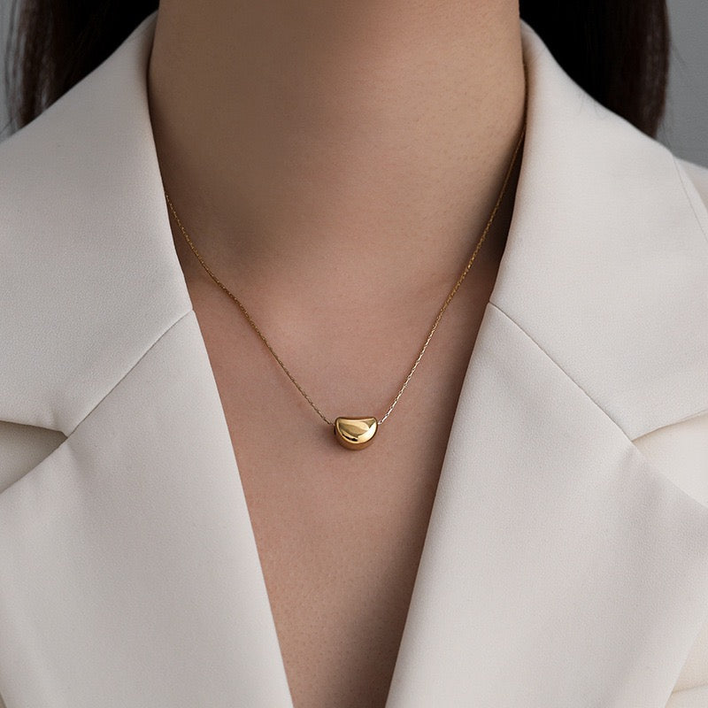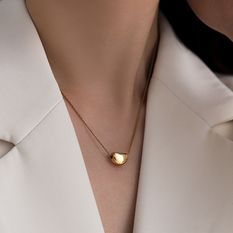 Vintage Yellow Gold Bean Necklace, 18K Gold Plated