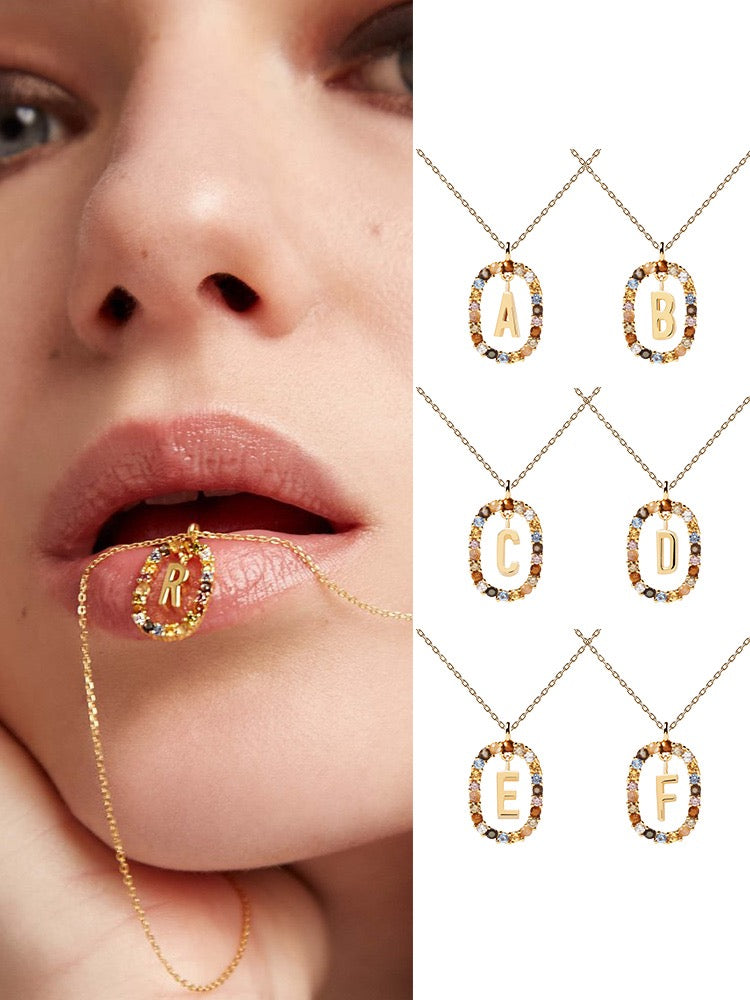 Initial Pendant Necklace, Gold Charm Necklace, Gold Letters, Oval Letter Necklace • Birthday Gift for Her • Mother
