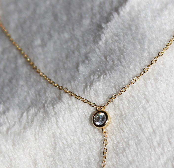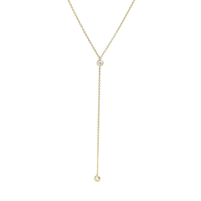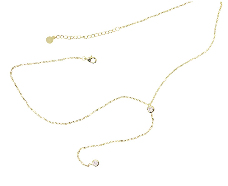 Dainty Drop Lariat Necklace for Women, 16" to 18" adjustable length (Gold, Double CZ Lariat)