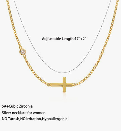 Cross Necklace for Women, 14K Gold Plated/Sterling silver Chain Necklace Dainty Layered Gold Cross Pendant Necklace