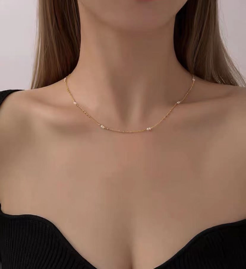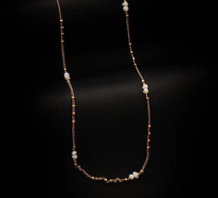 Cultured Pearl and Station Necklace in 18kt Gold