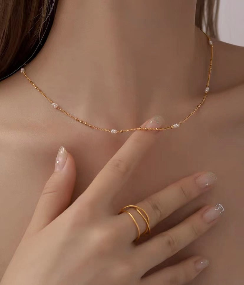 Dress yourself with one of our many luxurious pearl necklaces! Radiant white pearls are strung on a delicate, warm gold chain. Each necklace has been crafted by at-risk and rescued artisans in Thailand seeking refuge from the red light districts.