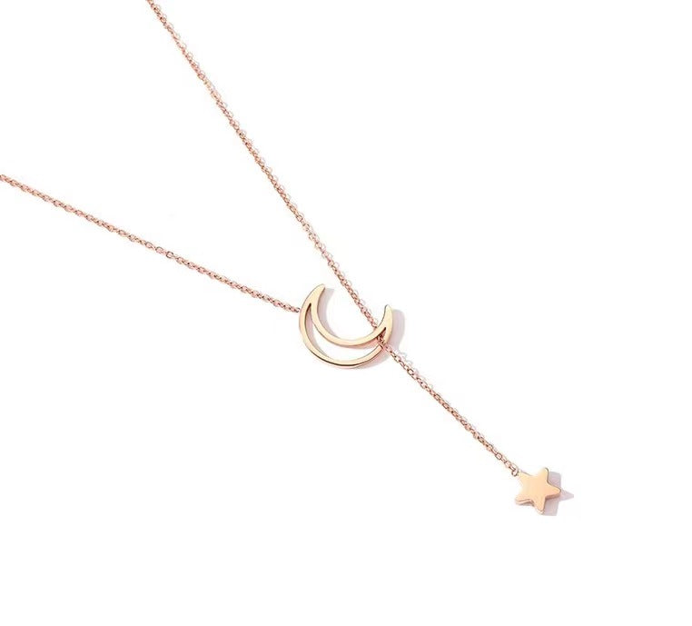 Moon and Star Necklace, Delicate Gold Necklace, Crescent Moon Necklace