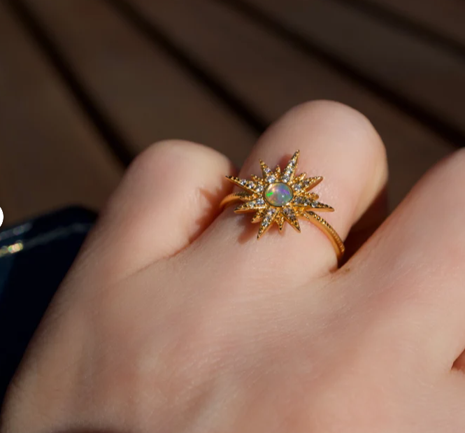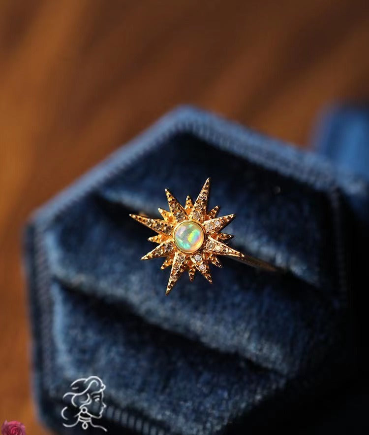 Adjustable Sun Rings for Women, Fidget Ring to My Daughter Ring, Starburst Ring, Natural Opal Ring, Sun gold ring, You are My Sunshine Ring