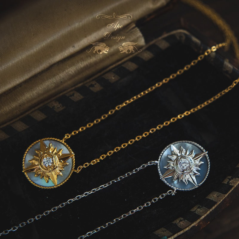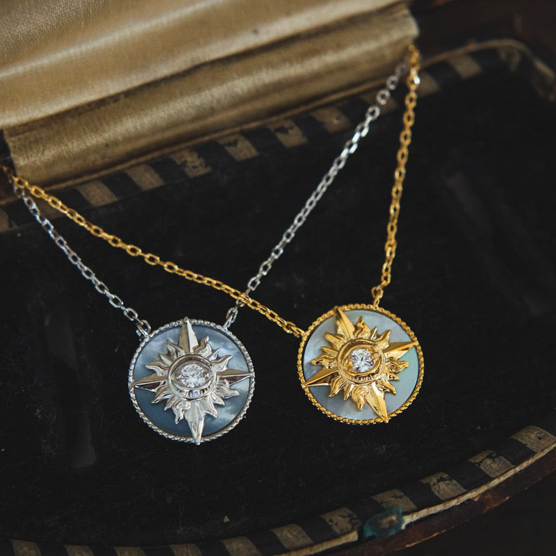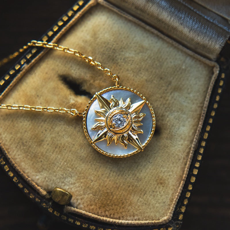 Let down your hair and strut a confident stride with this glowing golden jewelry around your neck. Inspired by Rapunzel, this Enchanted Fine Jewelry Sun necklace features a 14k white gold round frame lined with diamonds. On its center is a diamond-dotted 14k yellow gold sun sculpture. Wear this and be inspired to gather your strength to face your fears and make a difference in your life.