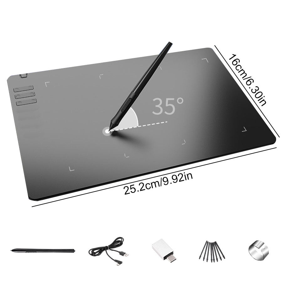 Graphic Drawing Tablet, Active Area 6.69 x 4.21 inch, Battery-Free, Compatible with Multiple OS